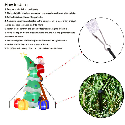 7-Ft One-Shoe Christmas Inflatable Santa Climbing on Ladder with Christmas Tree Inflatable, Built-in LED Lights - Christmas Blowups, Inflatable Decorations Outdoor, Christmas Decorations