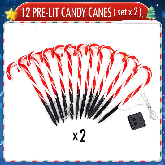 24PCS Candy Cane Lights, 10" Christmas Stake Light with LEDs, 8 Light Modes & Auto ON/Off & Memory Function, Waterproof Lights for Yard Lawn Garden